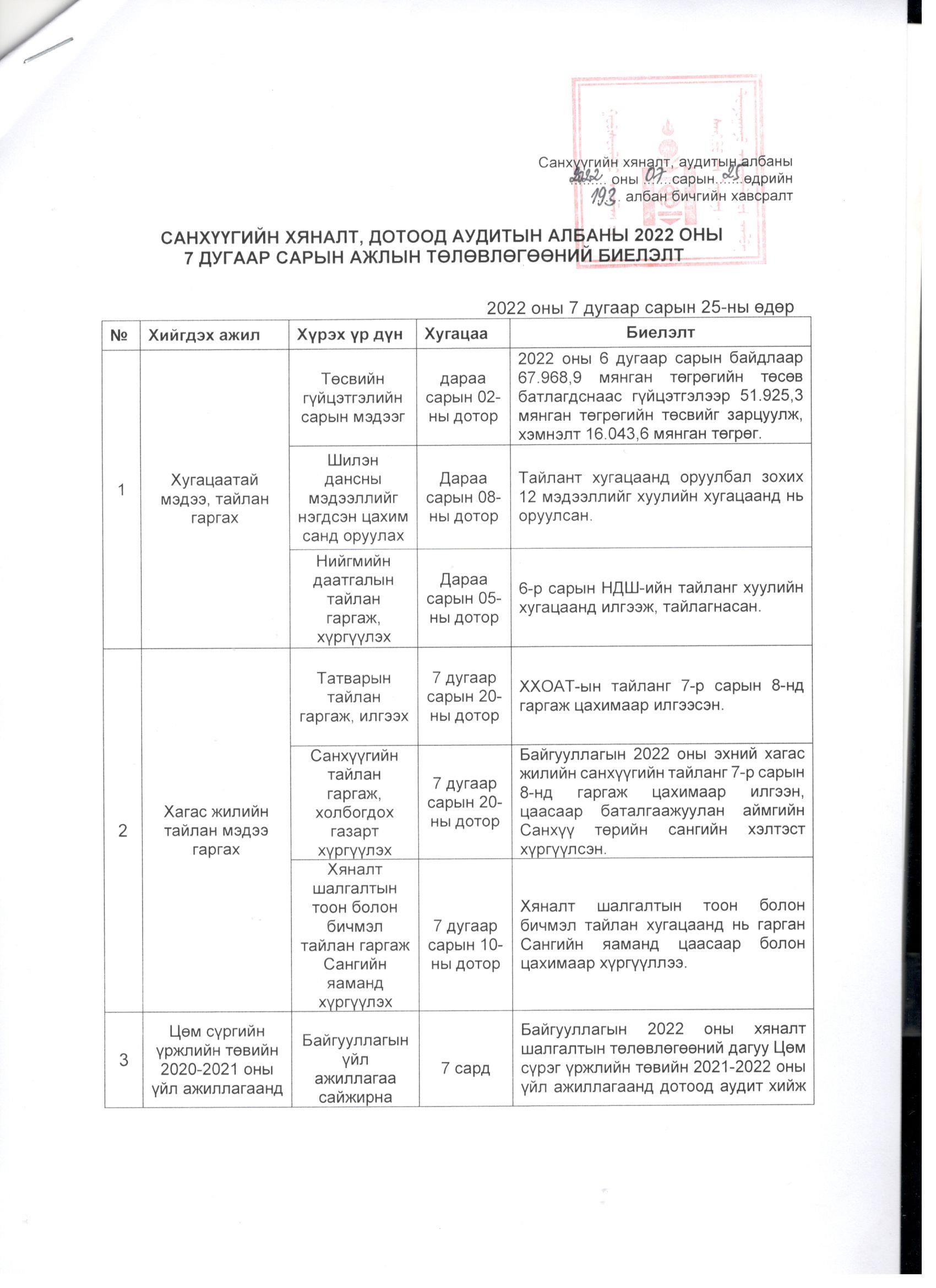 Үйл ажиллагааны тайлан Санхүүгийн хяналт, дотоод аудитын албаны 2022 оны 7 дугаар сарын үйл ажиллагааны тайлан Нийтэлсэн: Админ - 2022-07-25 81
