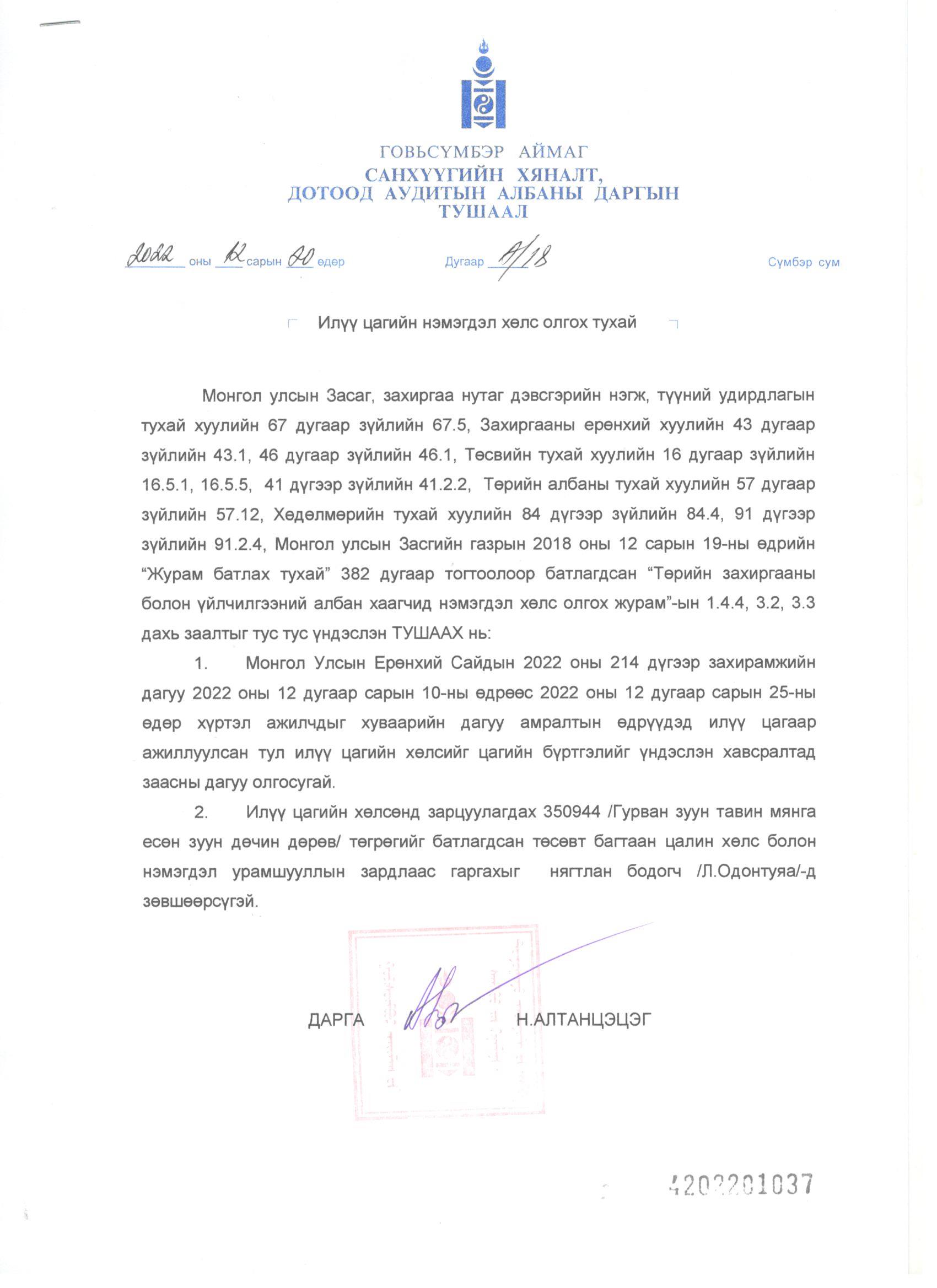 2022-А/18 Илүү цагийн нэмэгдэл хөлс олгох тухай