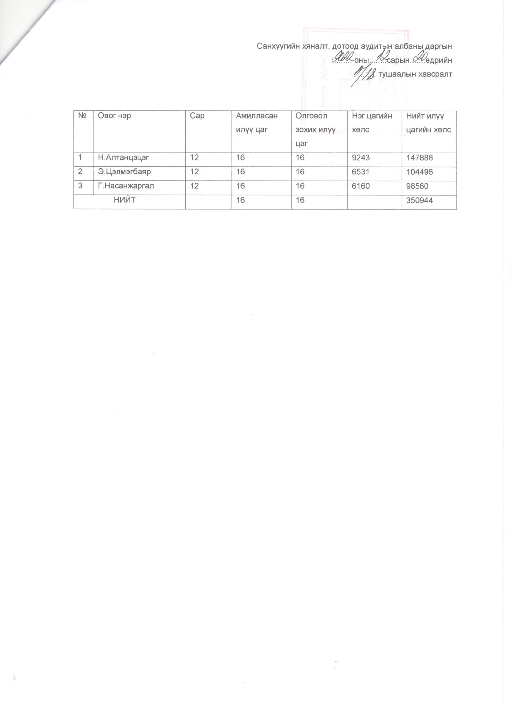 ГСА-САНХҮҮГИЙН ХЯНАЛТ, АУДИТЫН АЛБА