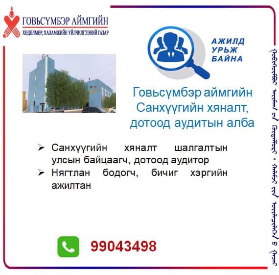 Санхүүгийн хяналт, шалгалтын улсын байцаагчийн 2 орон тоо зарлагдсан тул доорх линкээр орж танилцана уу.