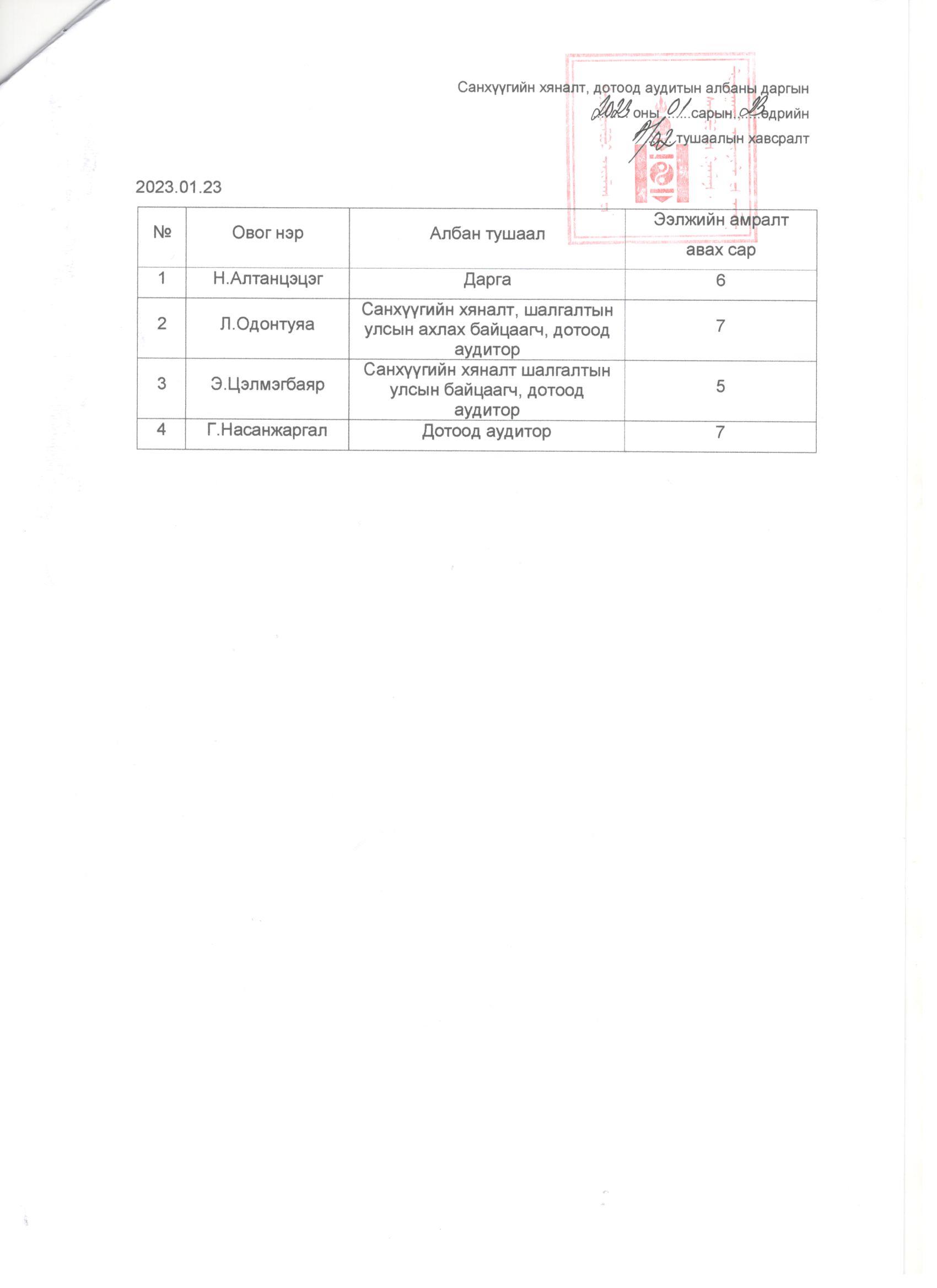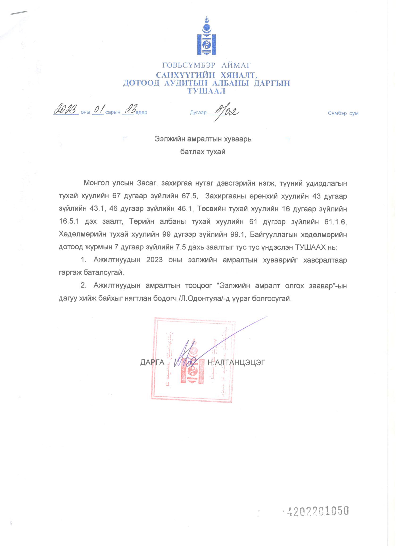 2023-А/02 Ээлжийн амралтын хуваарь батлах тухай