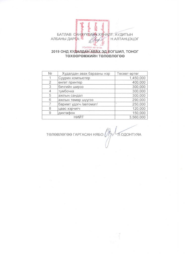 Худалдан авалтын төлөвлөгөө 2019 онд худалдан авах эд хогшил, тоног төхөөрөмжийн төлөвлөгөө Нийтэлсэн: Админ - 2021-11-25 99