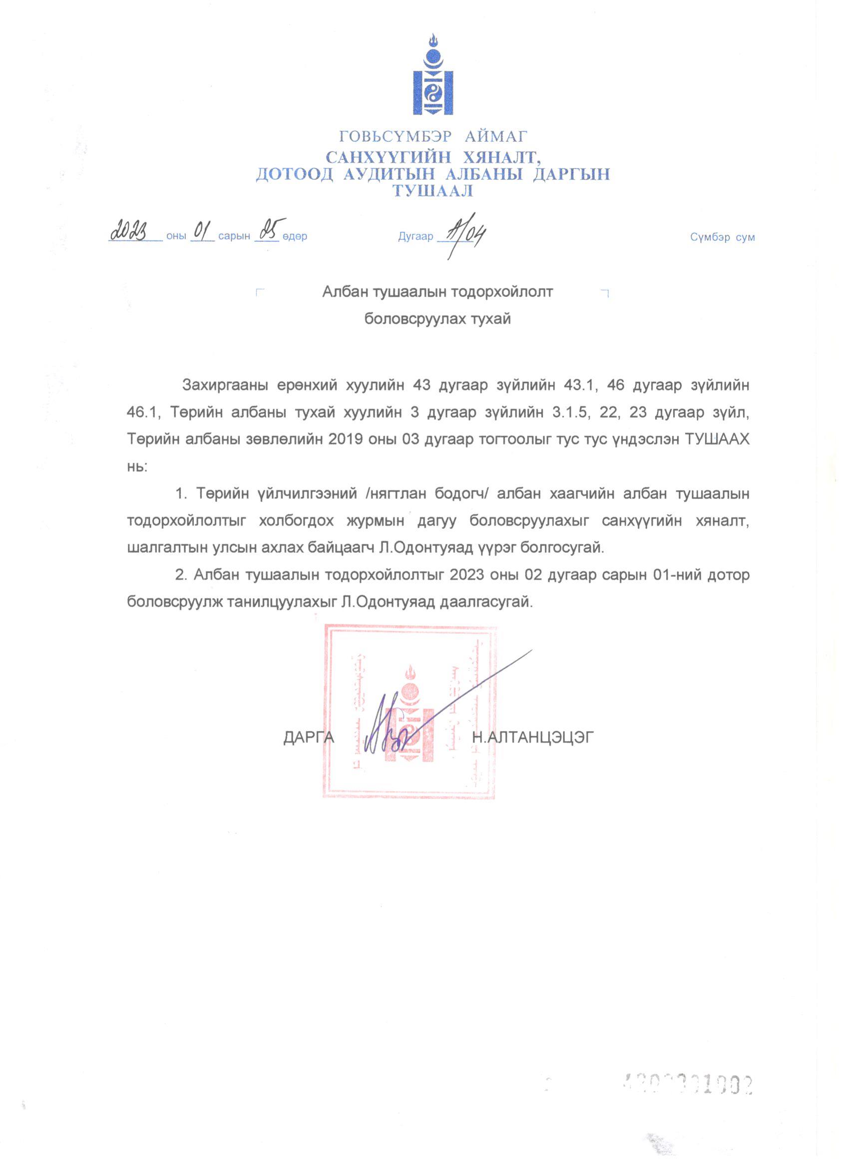 2023-А/04 Албан тушаалын тодорхойлолт боловсруулах тухай