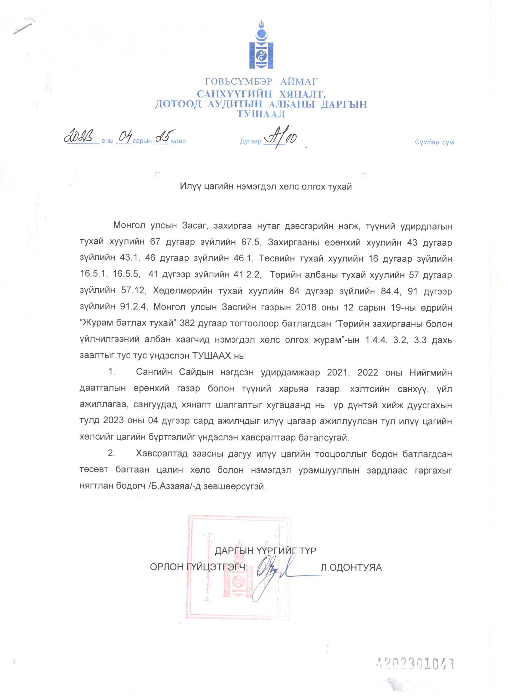 2023-А/10 Илүү цагийн нэмэгдэл хөлс олгох тухай