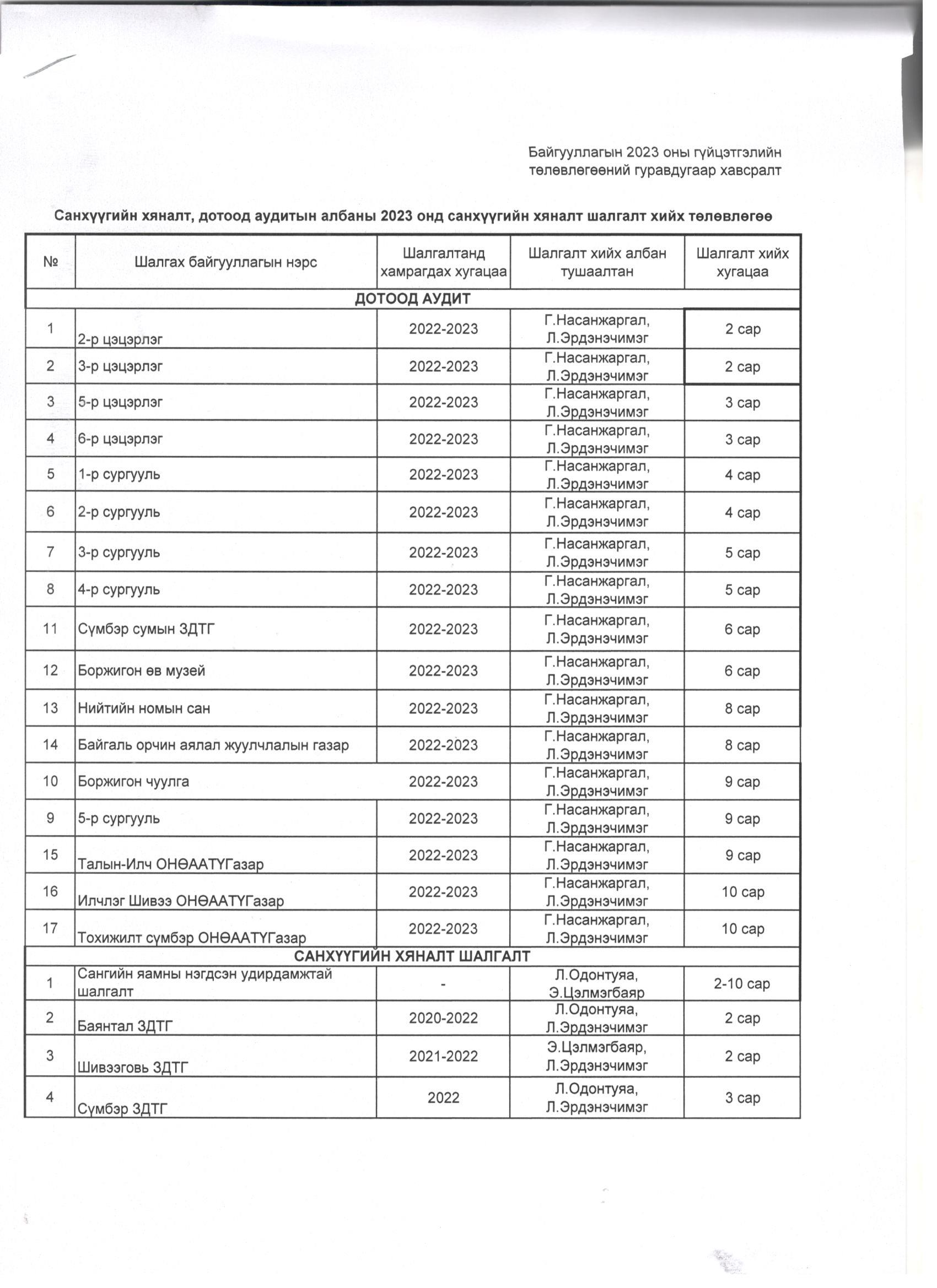Хяналт шалгалтын төлөвлөгөө 2023 оны санхүүгийн хяналт шалгалтын төлөвлөгөө Нийтэлсэн: Админ - 2023-04-03 117