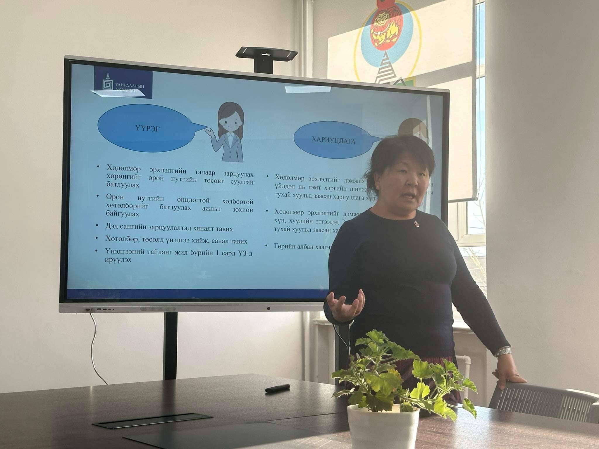 2023 оны 10 дугаар сарын 23-ны өдөр “Хөдөлмөр эрхлэлтийн зөвлөл”, “Хөдөлмөр, нийгмийн түншлэлийн гурван талт хороо” Аймаг, сумдын “Хөдөлмөрийн аюулгүй байдал, эрүүл ахуйн салбар зөвлөл”, “Хөдөлмөрийн эрхийн маргаан зохицуулах гурван талт хороо”-ны гишүүдийг чадавхижуулах сургалтад СХДАА-ны дарга Н.Алтанцэцэг хамрагдаж байна.