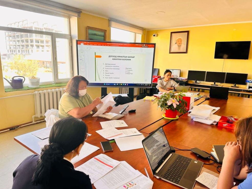 Ерөнхий боловсролын 1 дүгээр сургуулийн дотоод хяналтын багийн 6 ажилтанд “Байгууллагын дотоод хяналт хийх, бүтэц, чиг үүрэг, ач холбогдол” сэдвээр онол, арга зүйн сургалтыг дотоод аудитор Т.Отгонтамир зохион байгууллаа. Сургалтаар тус сургуулийн дотоод хяналтын журам, төлөвлөгөөн дээр ярилцаж арга зүйн зөвлөгөө өгөв.