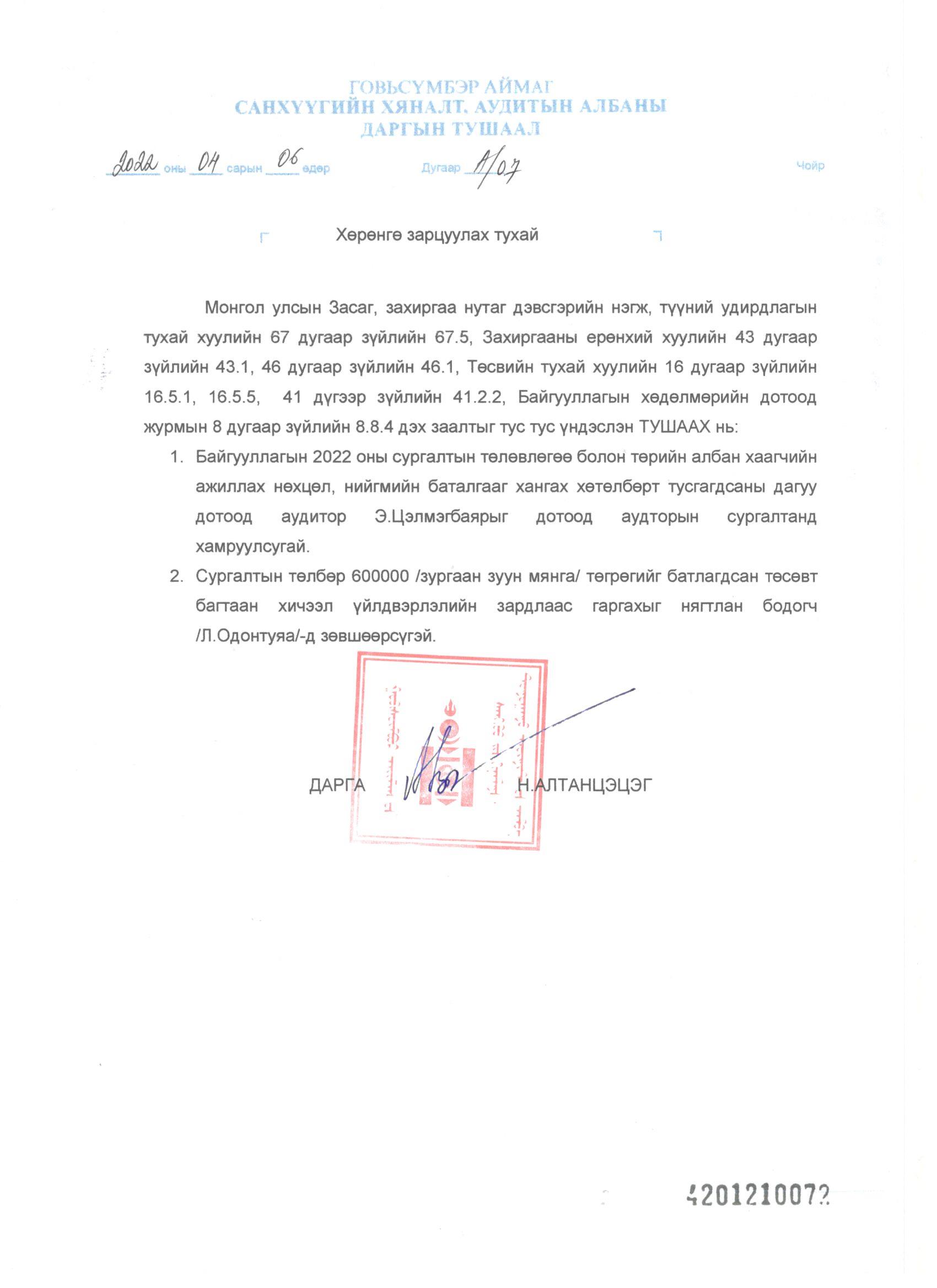 2022-А/07 Хөрөнгө зарцуулах тухай