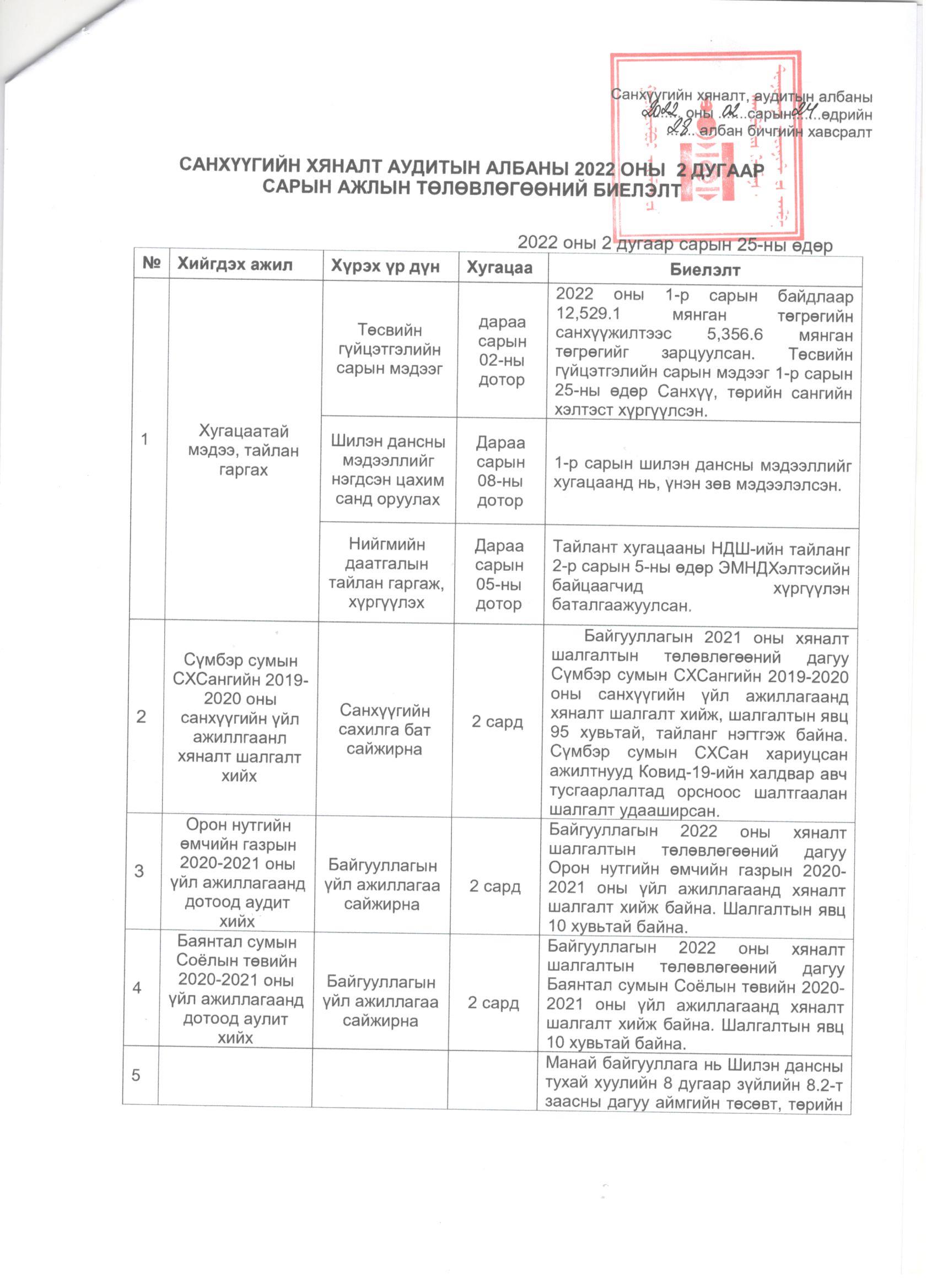 Үйл ажиллагааны тайлан Санхүүгийн хяналт, дотоод аудитын албаны 2022 оны 2 дугаар сарын үйл ажиллагааны тайлан Нийтэлсэн: Админ - 2022-05-26 86