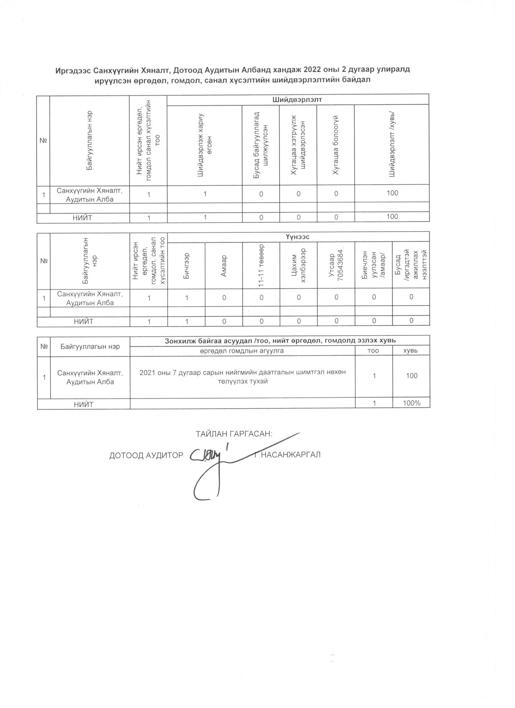 Өргөдөл, гомдлын мэдээ ӨРГӨДӨЛ ГОМДЛЫН ТАЙЛАН /2022 оны 2-р улирал/ Нийтэлсэн: Админ - 2022-05-26 103