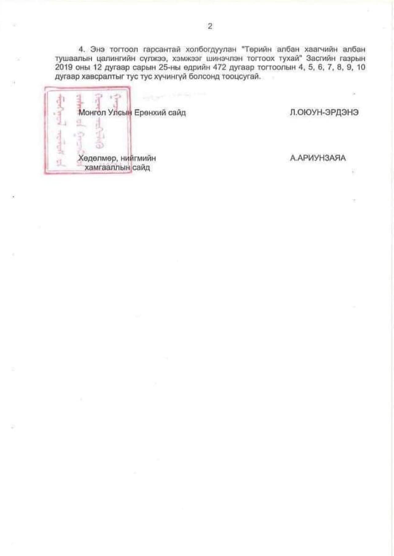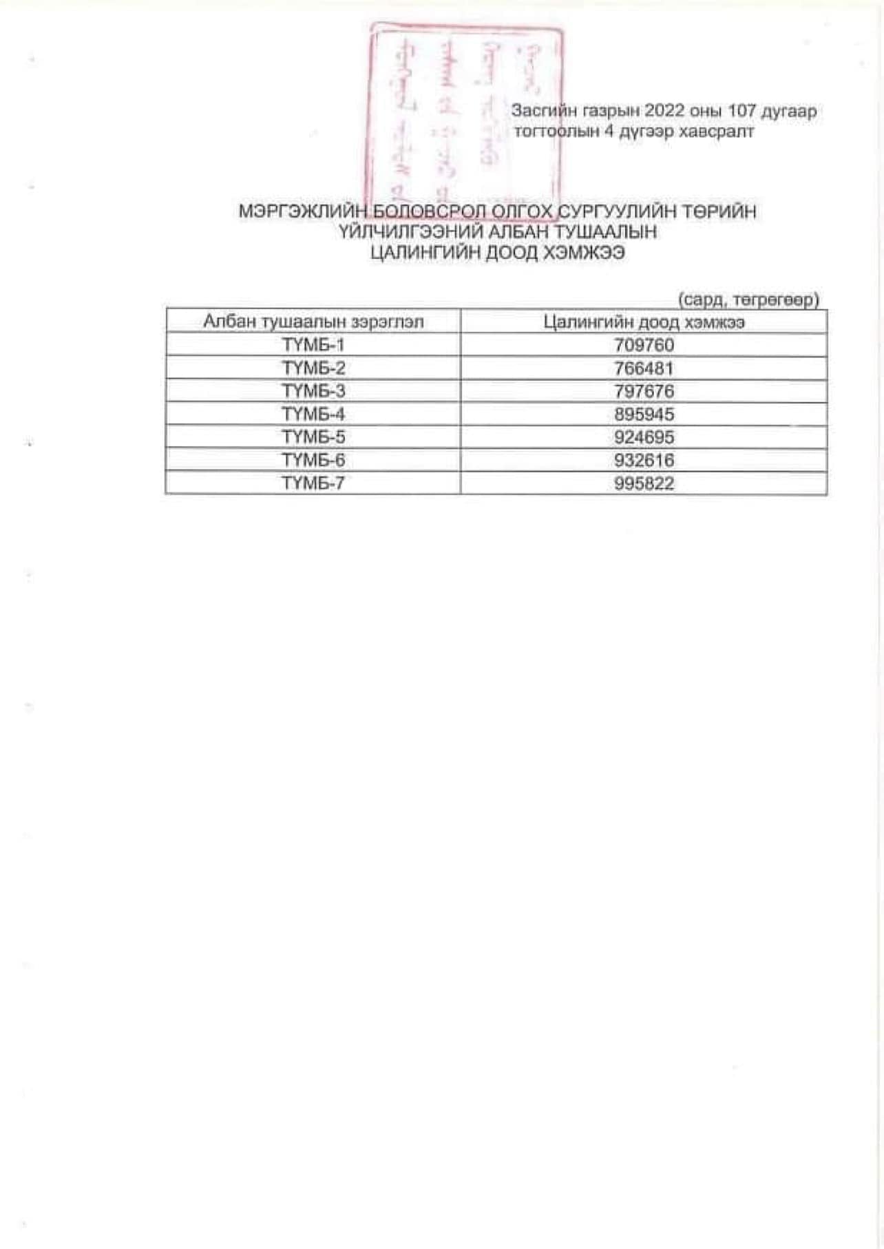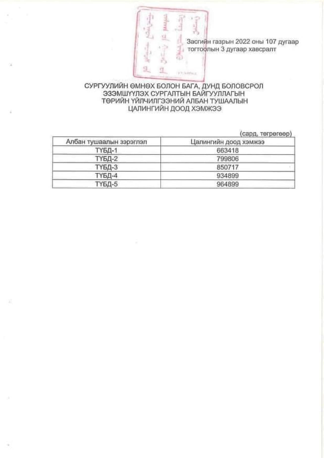 Засгийн газрын тогтоол Үйлчилгээний албан тушаал эрхэлдэг төрийн албан хаагчийн цалингийн доод хэмжээг тогтоох тухай Нийтэлсэн: Админ - 2022-05-30 81