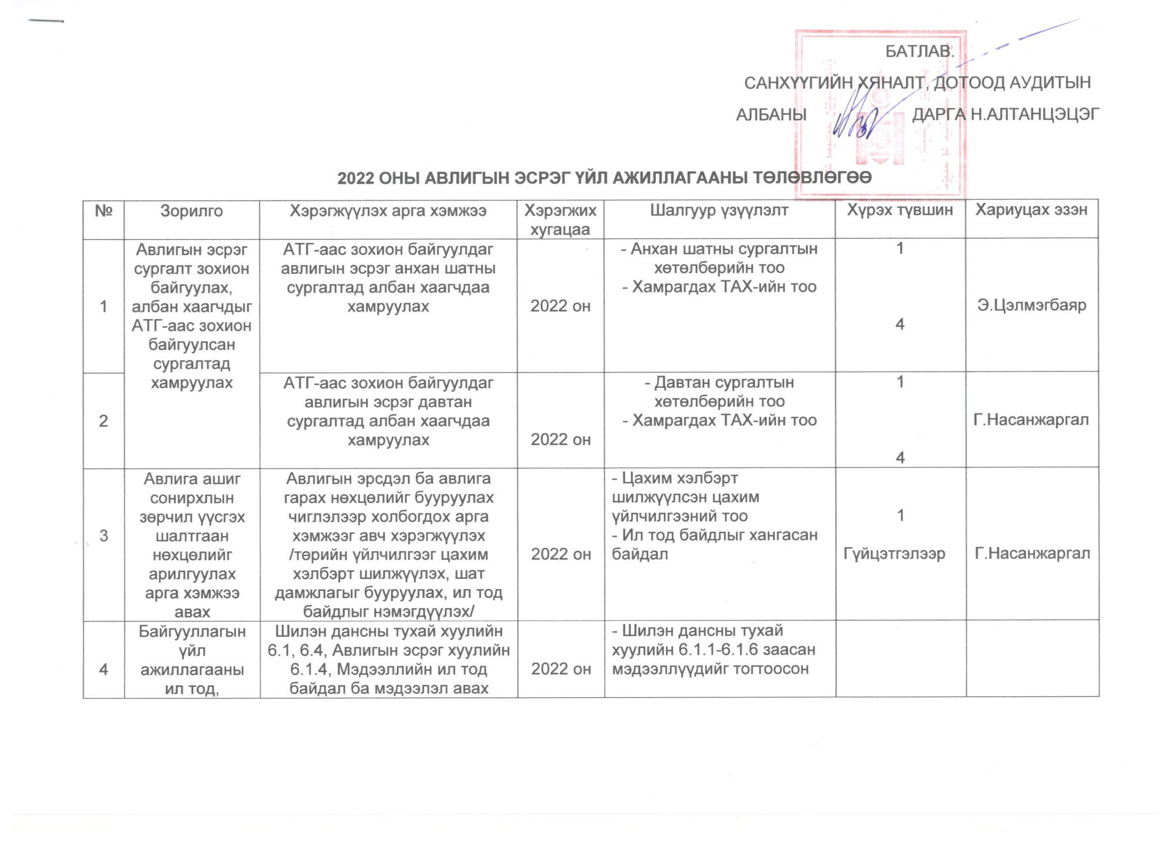 2022 оны Авлигын эсрэг үйл ажиллагааны төлөвлөгөө