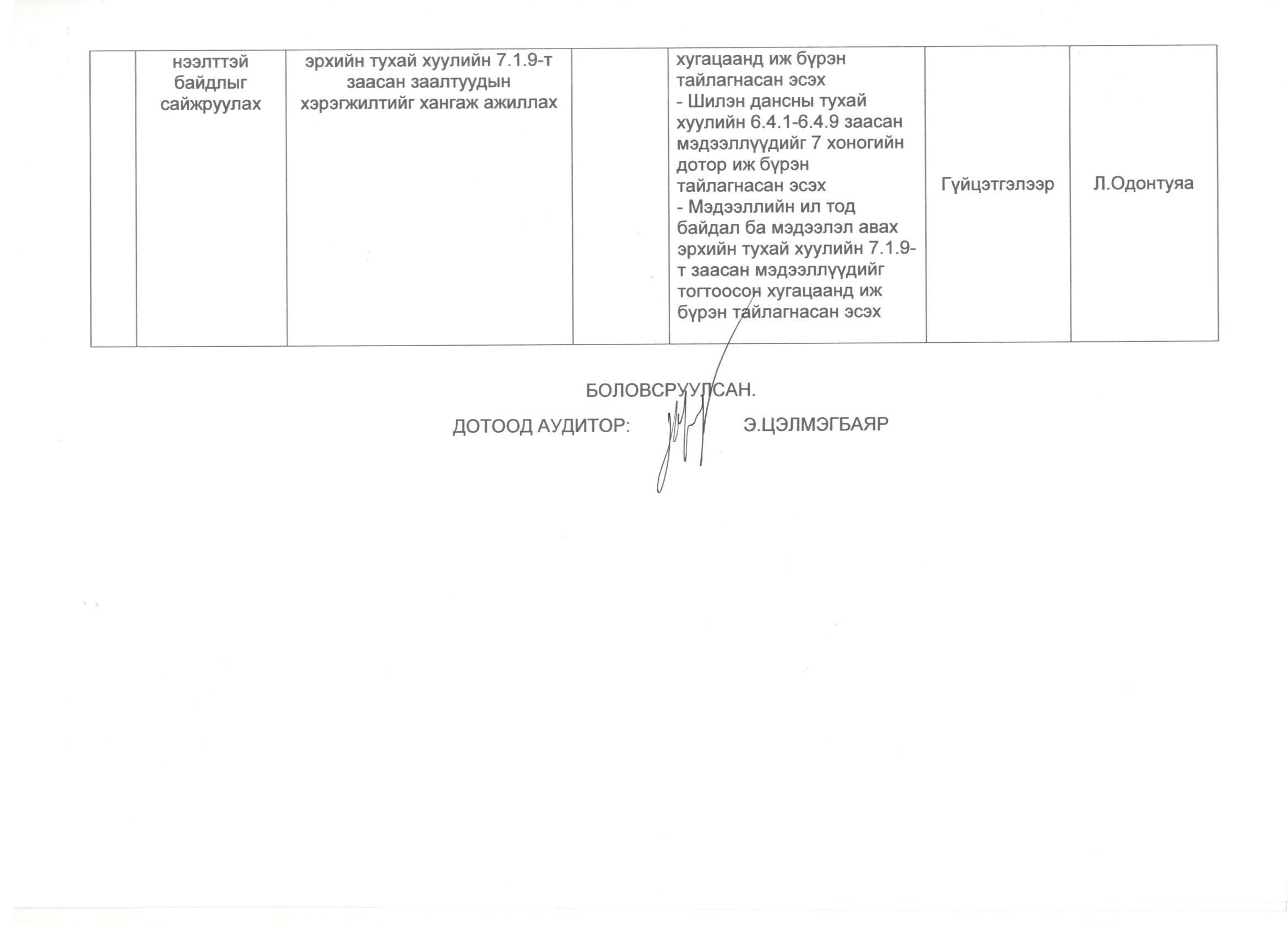 Санхүүгийн хяналт, дотоод аудитын албаны 2024 оны гүйцэтгэлийн төлөвлөгөө