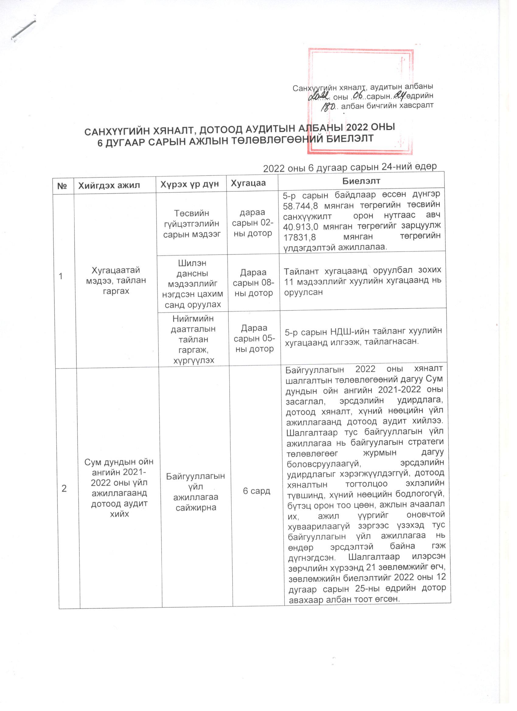 Үйл ажиллагааны тайлан Санхүүгийн хяналт, дотоод аудитын албаны 2022 оны 6 дугаар сарын үйл ажиллагааны тайлан Нийтэлсэн: Админ - 2022-06-24 84